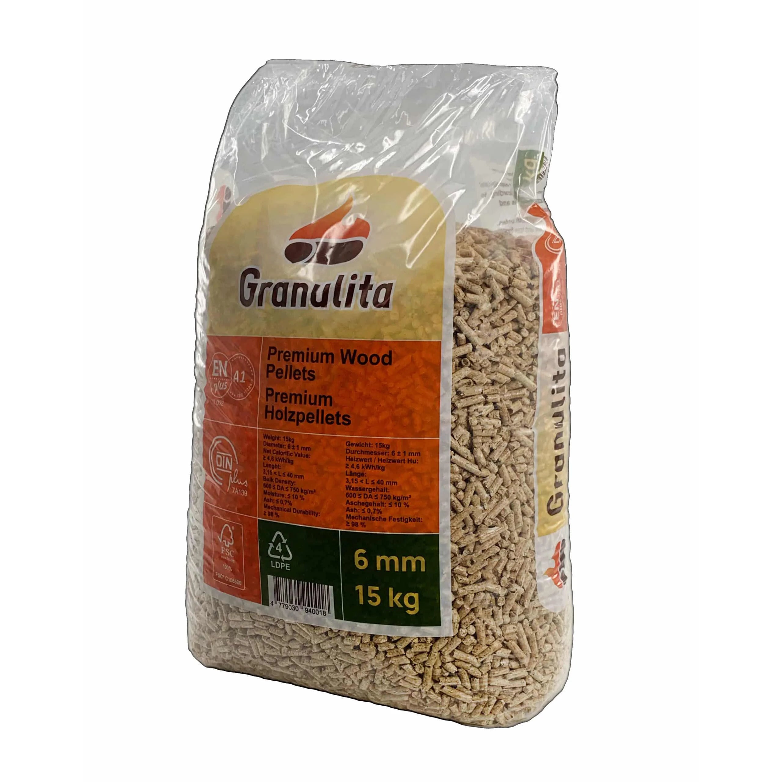 Pellety Granulita są wyprodukowane z starannie oczyszczonych trocin sosnowych. Przed zapakowaniem przechodzą podwójny proces odsysania kurzu, co korzystnie wpływa na efektywność pieca i jakość spalania. Te granulki charakteryzują się wysoką wartością kaloryczną, emitując jednocześnie minimalne ilości CO2 i popiołu. Posiadają również certyfikat ENplus® A1 i są pakowane w praktyczne worki foliowe o wadze 15 kg, co ułatwia ich obsługę.